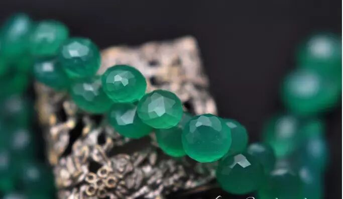绿玉髓,清爽的翠绿色中带着点点黄色,常常让人们想起“在金子中诞生的宝石”。色泽和外表特别像翡翠,受到众人的青睐。在古罗马时期和维多利亚时期,人们常常认为绿玉髓是具有强大功效作用的治疗石,也是具有很高人气值的装饰品。