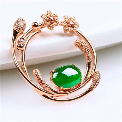 裕天下珠宝 18K金钻镶嵌蛋面花型吊坠2.86g |