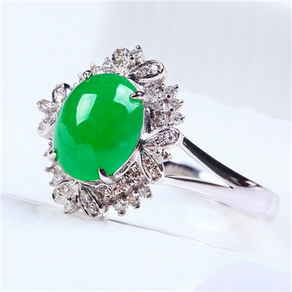 裕天下珠宝 18K金钻镶嵌满绿蛋面戒指