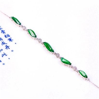 裕天下珠宝 18K金钻镶嵌满绿随形手链